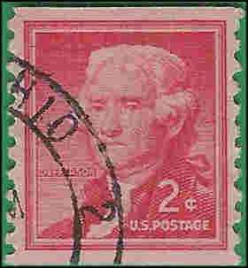 #1055d 2c Thomas Jefferson Coil Single 1954 Used WP