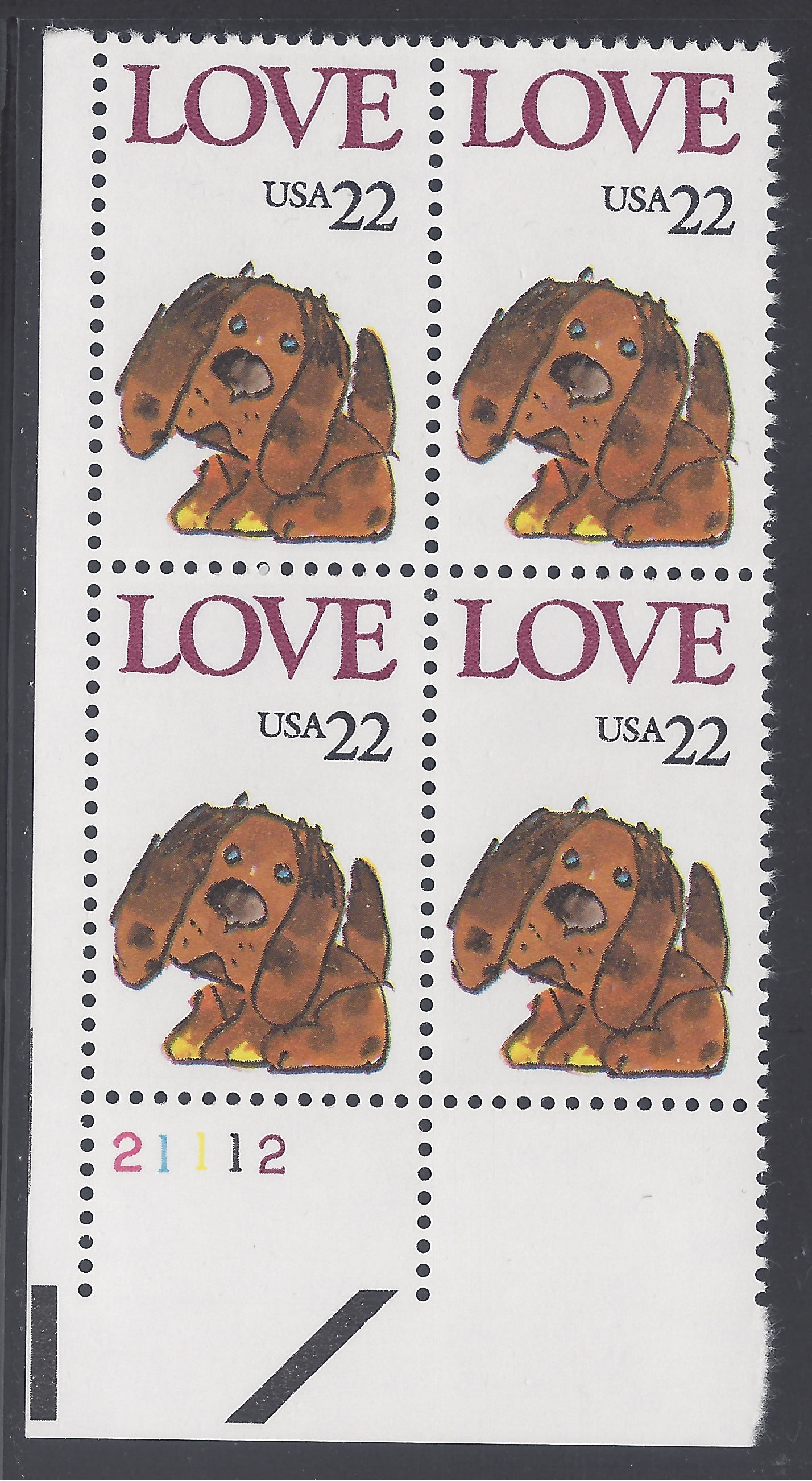 #2202 22c Puppy Love PB/4 1986 Mint NH