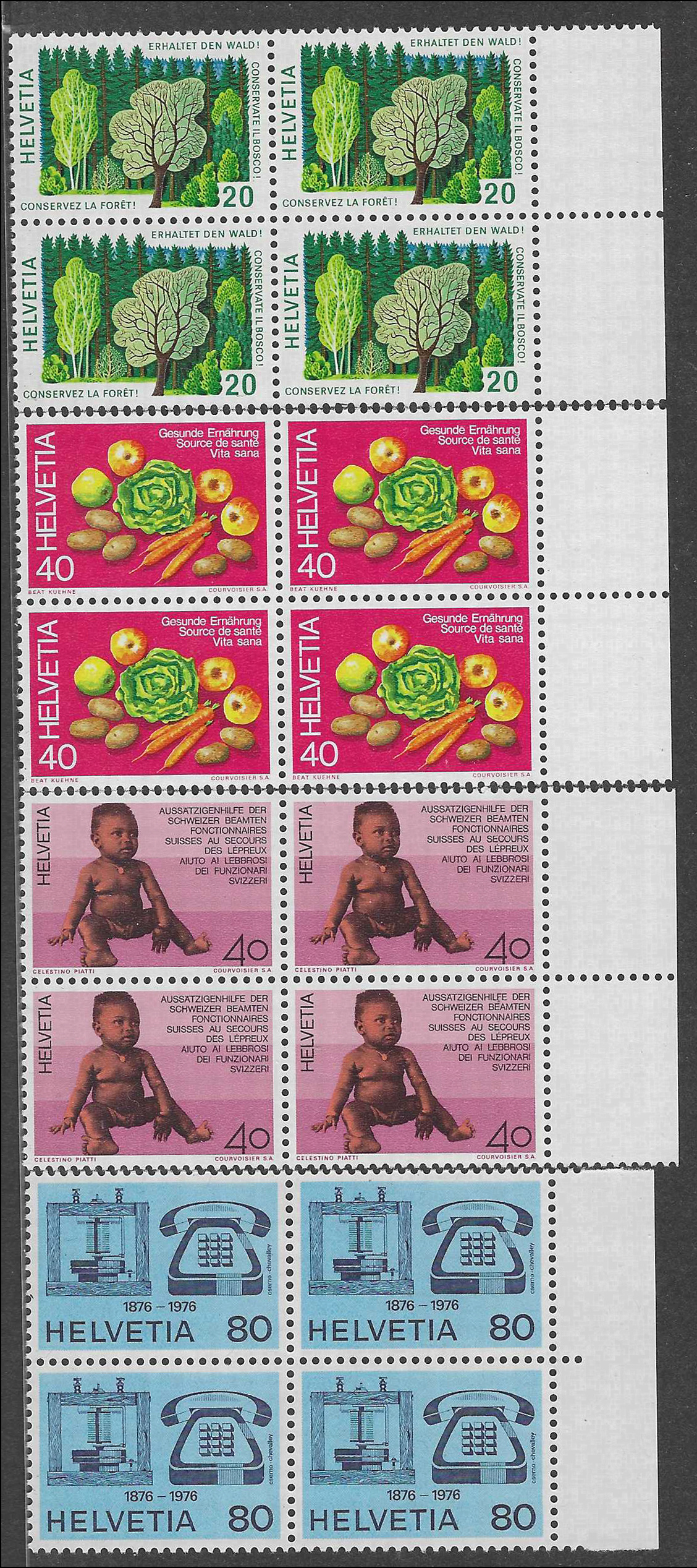 Switzerland # 610-613 1976 Mint NH Set of 4 Blocks of 4